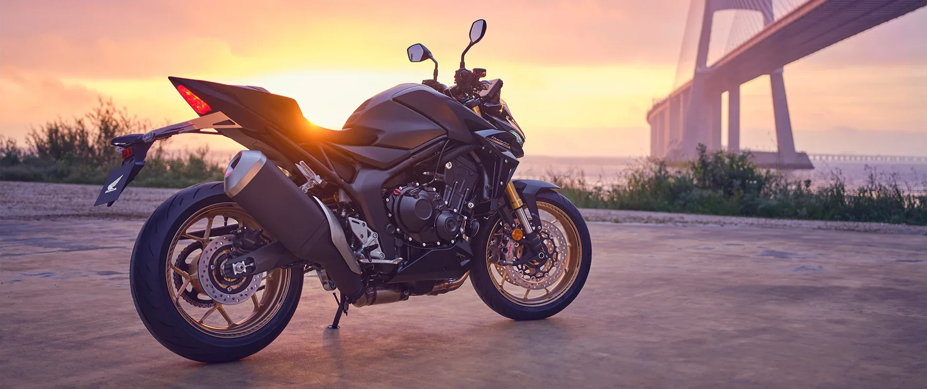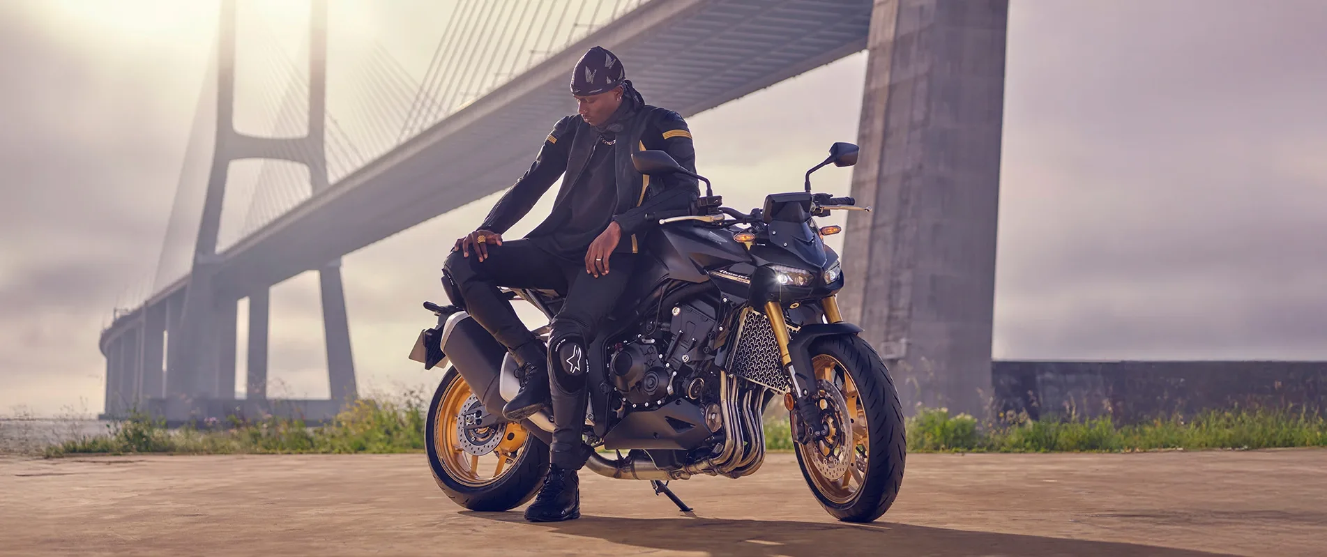Minimalist yet aggressive, the CB1000 Hornet SP exudes pure muscle. Designed with sharp, aggressive lines and a mechanically raw aesthetic, this motorcycle commands attention. A new dual-projector LED headlight creates a fierce, unmistakable presence, while the streamlined LED tail light ensures high visibility. Matt Ballistic Black Metallic – Accentuated with premium gold detailing, this exclusive finish enhances the CB1000 Hornet SP’s presence on the road.