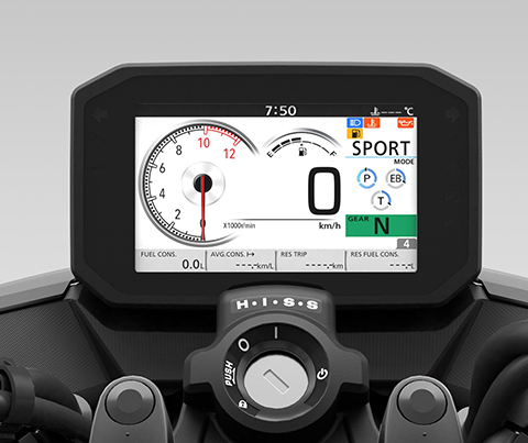 The CB750 HORNET features throttle By Wire engine control that offers three default riding modes, RAIN, STANDARD, and SPORT, plus an additional customizable USER mode. You can also look forward to three levels of Engine Power, Engine Brake and HSTC with integrated Wheelie Control. It also features a full colour high visibility TFT screen, and the Honda Smartphone Voice Control system, which links the rider to their Android while on the move and allows voice management of phone calls, messages, music and navigation.