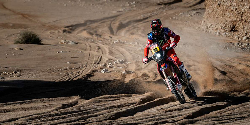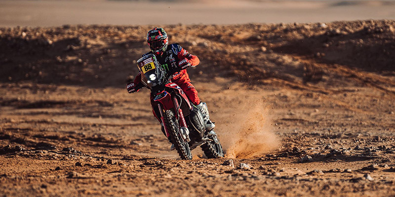 Behind the young Chilean, American rider Ricky Brabec also turned out a satisfactory showing. The Monster Energy Honda Team rider, third on the RallyGP day class, was able to claw back several minutes from his closest rivals and, furthermore, regain the good sensations. Brabec finished 1’30” behind the day’s winner and moves up one position in the rankings. Pablo Quintanilla and Joan Barreda were lumbered with the troublesome task of opening the track this morning in the middle of a sandstorm. At the end of the interrupted stage, race authorities are still weighing up different options on how to classify the riders who had finished and to decide what to do with the rest of the riders involved. Quintanilla and Barreda were, nonetheless, able to make it through to the end of the special. Quintanilla and Barreda both remain in contention for the overall race victory. However, Joan suffered a fall and the Spaniard is still unsure whether he will be 100% fit to battle for another stage win. In tomorrow’s stage, the Chilean and the Spaniard will start from behind and will attempt to make up the time dropped today.