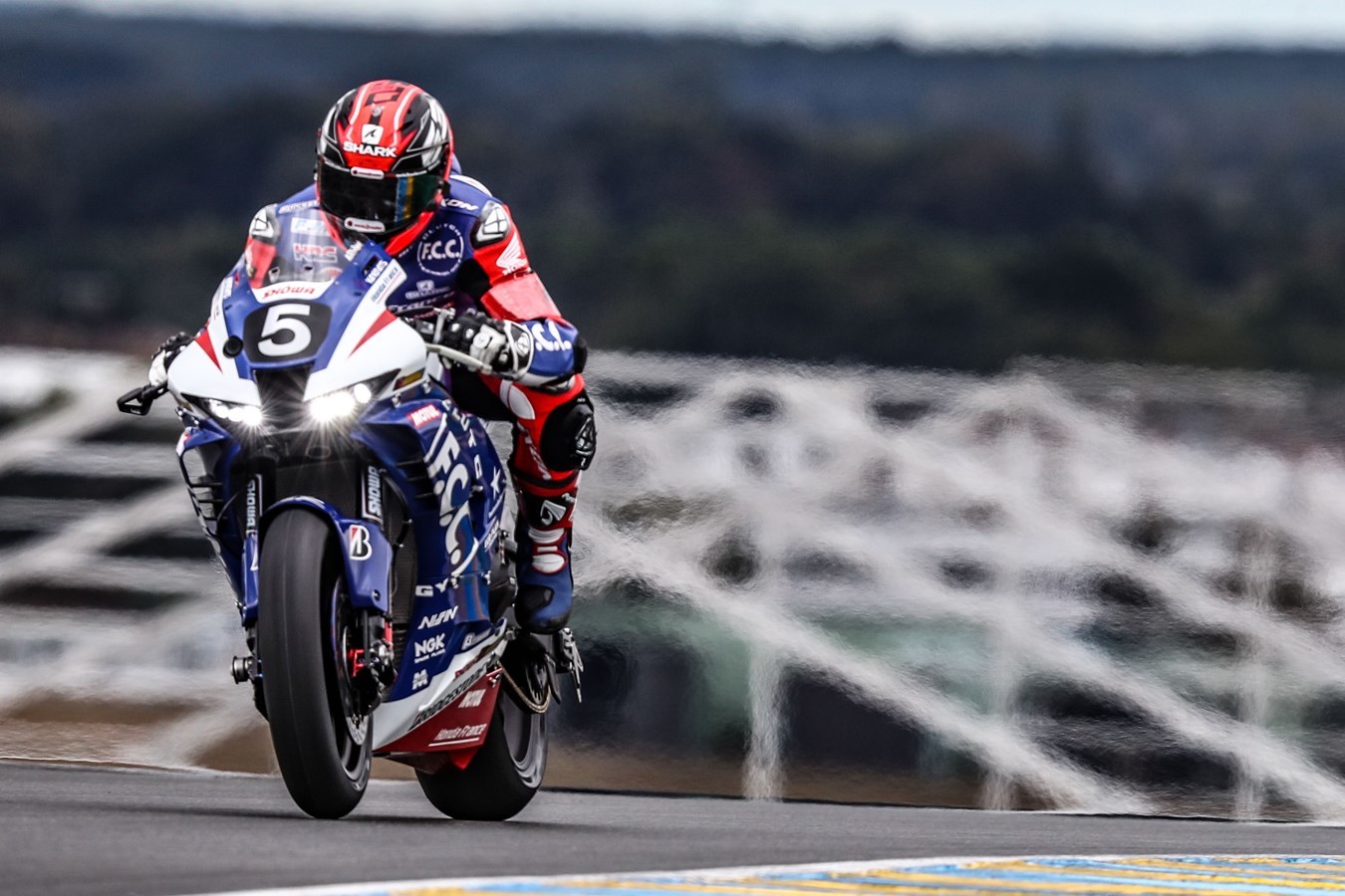 Starting the race from fourth position yesterday (Saturday 29 August) in dry conditions, Di Meglio took the race lead on his second lap until the end of his first stint. The #5 Honda CBR1000RRR Fireblade SP was in second place after the first pit stop just before the weather turned and rain fell across the Bugatti circuit. However, not fazed by the changing conditions, the team stormed back to regain the lead.