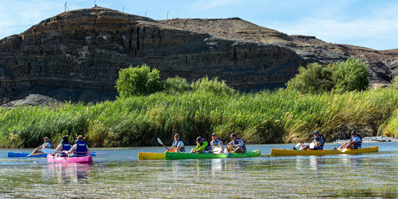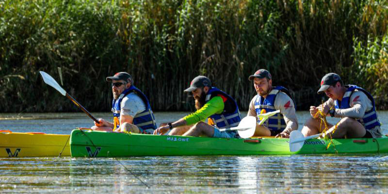 As if spending 7 hours to do 136km of grueling desert trails wasn’t nearly enough exercise, whatever the contestants may have held in reserve, was depleted with a short paddle against a howling headwind on the Great Orange River.