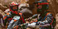 The first of the days serious challenge, was just before midday when “Hell’s Cradle” was entered into. A near mile of sandy canyon twisting riverbed trail snakes between lurking rocks and boulders. Ironically, only one rider took a gentle slow tumble whilst in the meat of the canyon, but many had issues with a section directly after the required skills finish line.